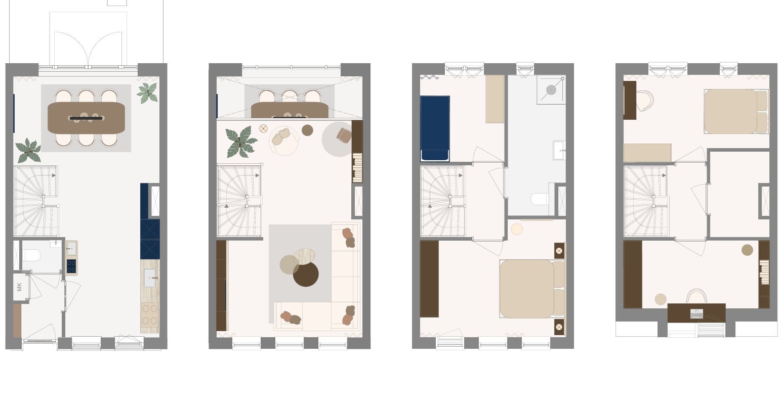 Met 4 woonlagen heb je alle vrijheid om het huis helemaal naar jouw leefstijl aan te passen. Via de entreehal kom je binnen op de begane grond met een aantrekkelijke woonkeuken die grenst aan de diepe stadstuin.