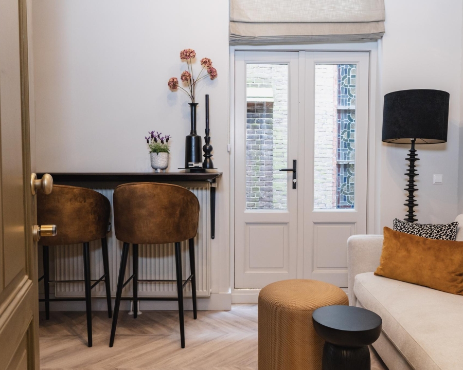 In de monumentale Pastorie aan de Hoge Gouwe in Gouda smelten historie en hedendaags comfort prachtig samen. Dit karaktervolle pand is met oog voor detail en stijl gerenoveerd: het ademt nog steeds de charme van toen, maar geeft je tegelijk het comfort van nu Binnen dit bijzondere gebouw vind je Appartement Karmeliet, een volledig gemeubileerd en instapklaar appartement dat dankzij zijn indeling over twee woonlagen rust en privacy combineert met een sfeervolle leefruimte.