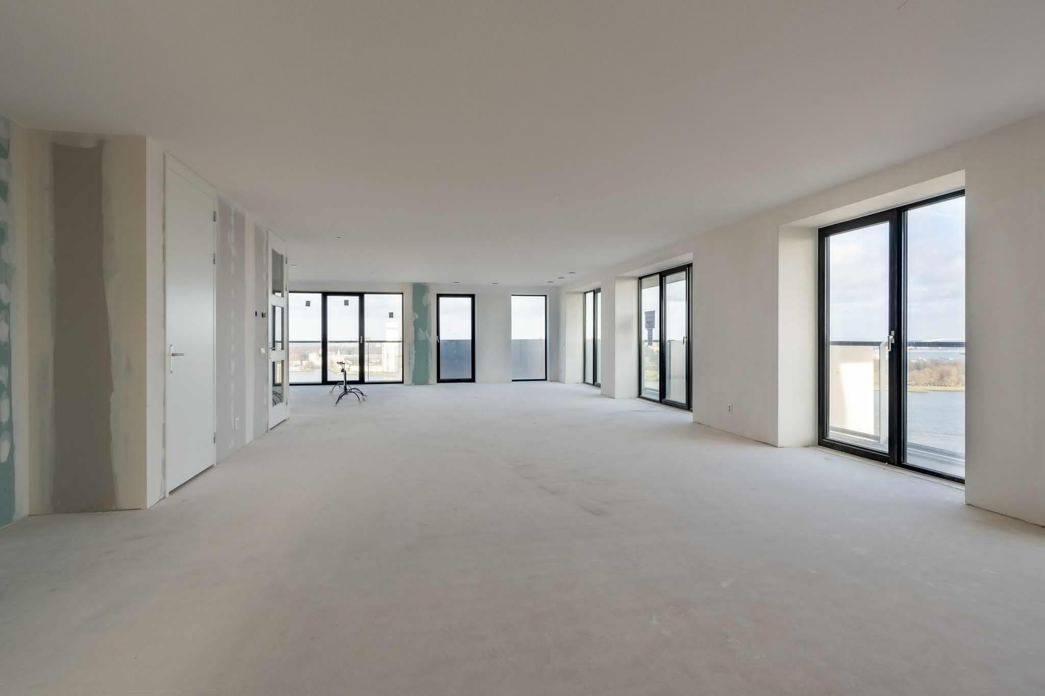 De twee topverdiepingen herbergen de riante XL-penthouses. Elk penthouse bezet een halve verdieping, wat resulteert in een adembenemend 180 graden panorama over Rotterdam.
