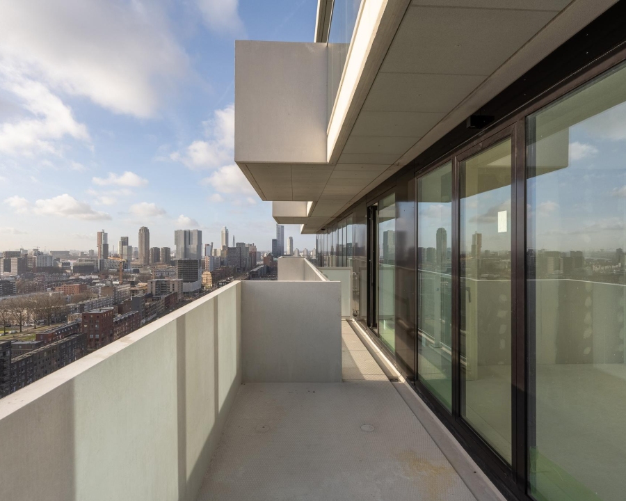 De twee topverdiepingen herbergen de riante XL-penthouses. Elk penthouse bezet een halve verdieping, wat resulteert in een adembenemend 180 graden panorama over Rotterdam.