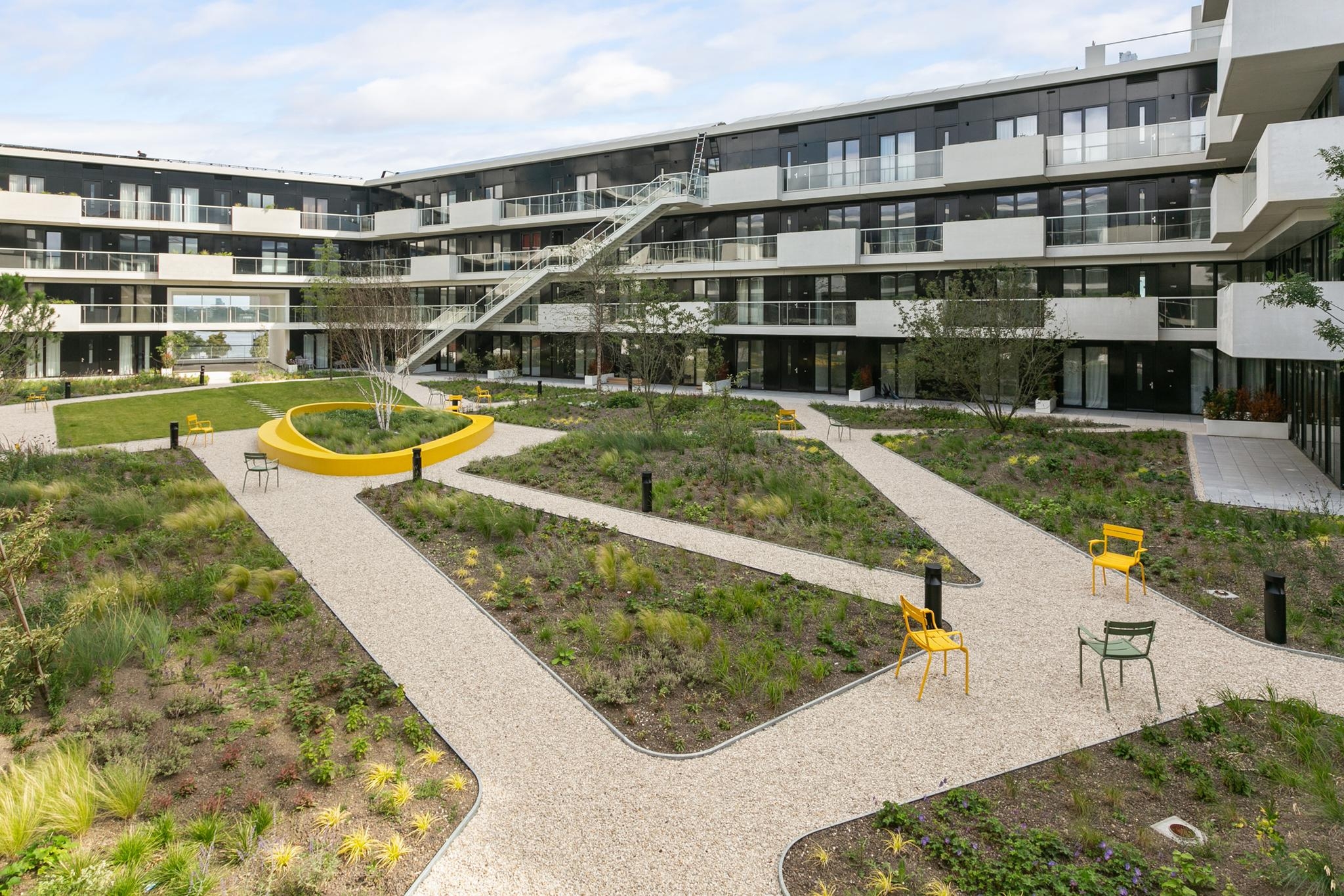 Imagine belooft een blikvanger te worden in de stad. Met zijn twee opvallende torens en stadswoningen, biedt het een ware stedelijke ervaring. Het binnenhof creëert een groene ontsnapping in de stad, een uitgestrekte tuin waar je kunt ontspannen, je buren ontmoeten, of genieten van de avondlucht. Elk appartement beschikt bovendien over een eigen balkon, loggia, of terras, voor nog meer woongenot.