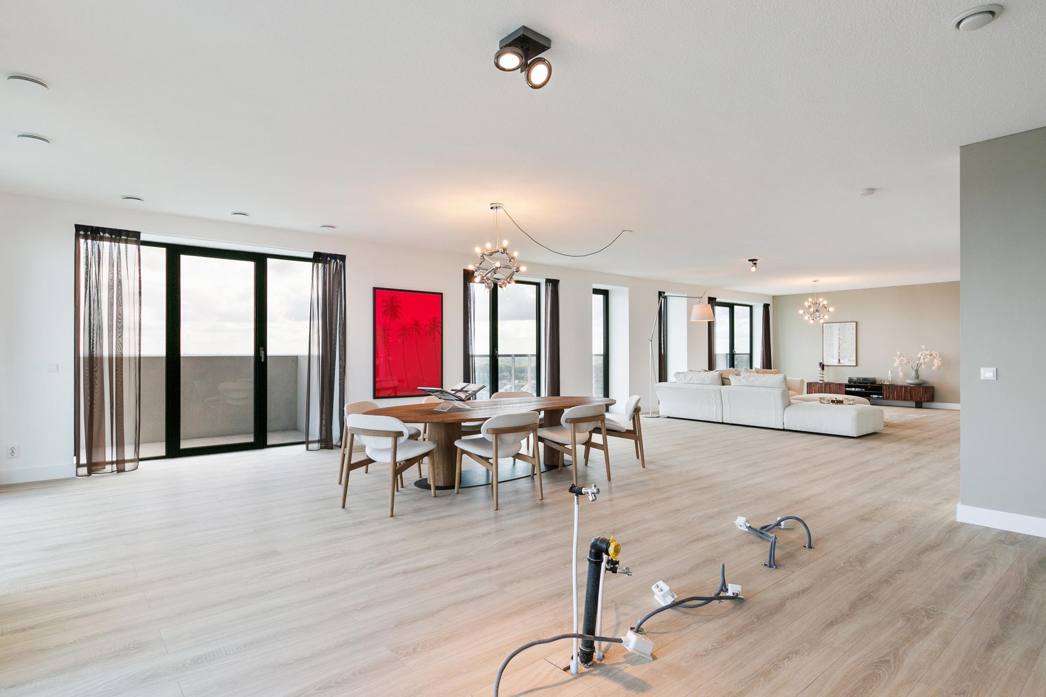 De twee topverdiepingen herbergen de riante XL-penthouses. Elk penthouse bezet een halve verdieping, wat resulteert in een adembenemend 180 graden panorama over Rotterdam.