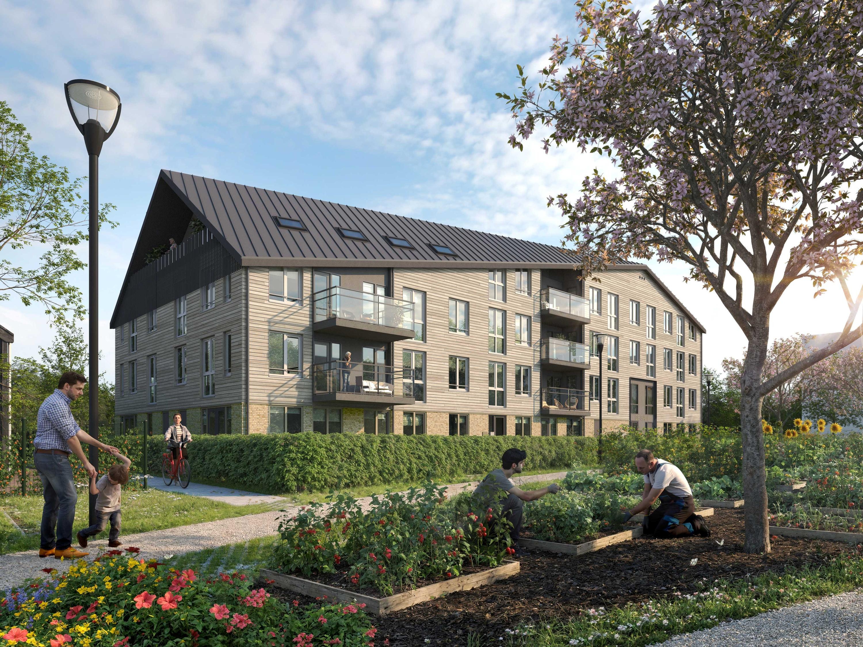 Aan de levendige Moestuin in Menheerse Erf komt een stijlvol woongebouw met 26 comfortabele appartementen, allemaal met een privé tuin, balkon of een terras. Op deze gezellige plek is het vier seizoenen genieten. In de moestuin ontmoeten buren elkaar, en is het gezellig tuinieren.