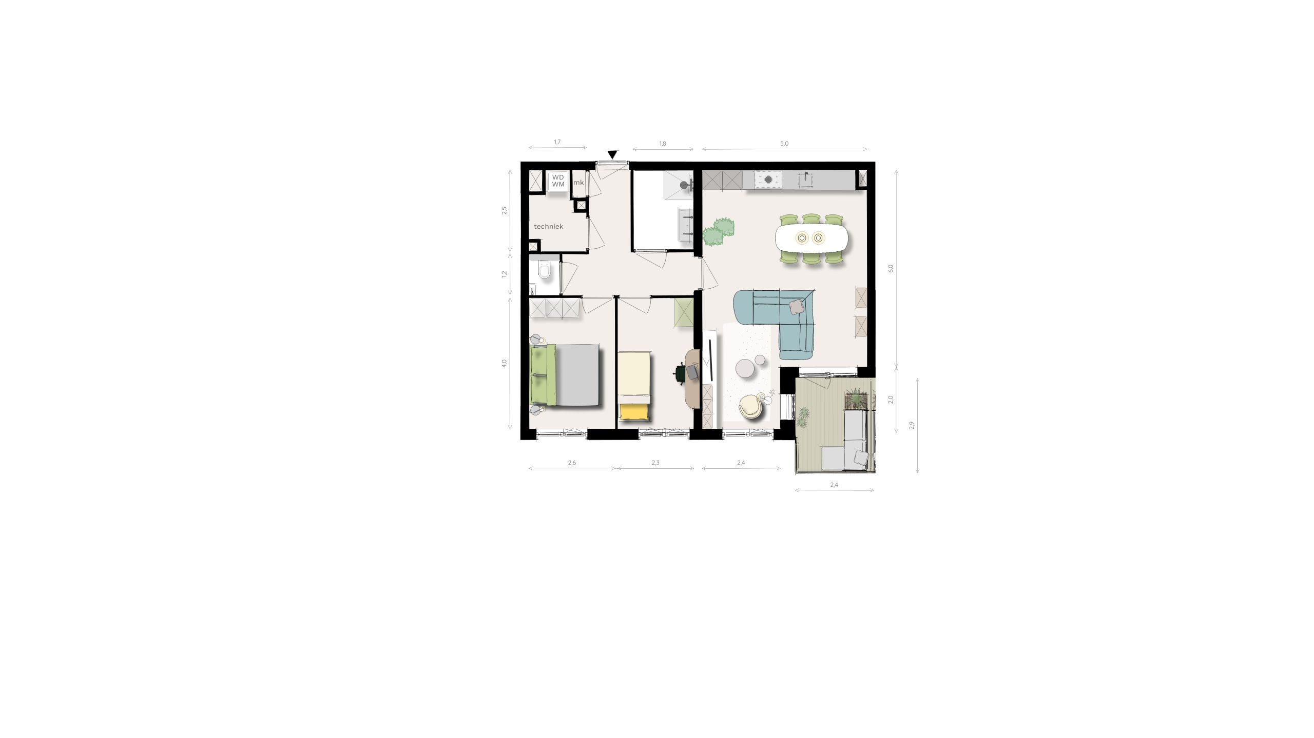 - Privé tuin (24 tot 69m2) of balkon of terras (6 tot 10m2)