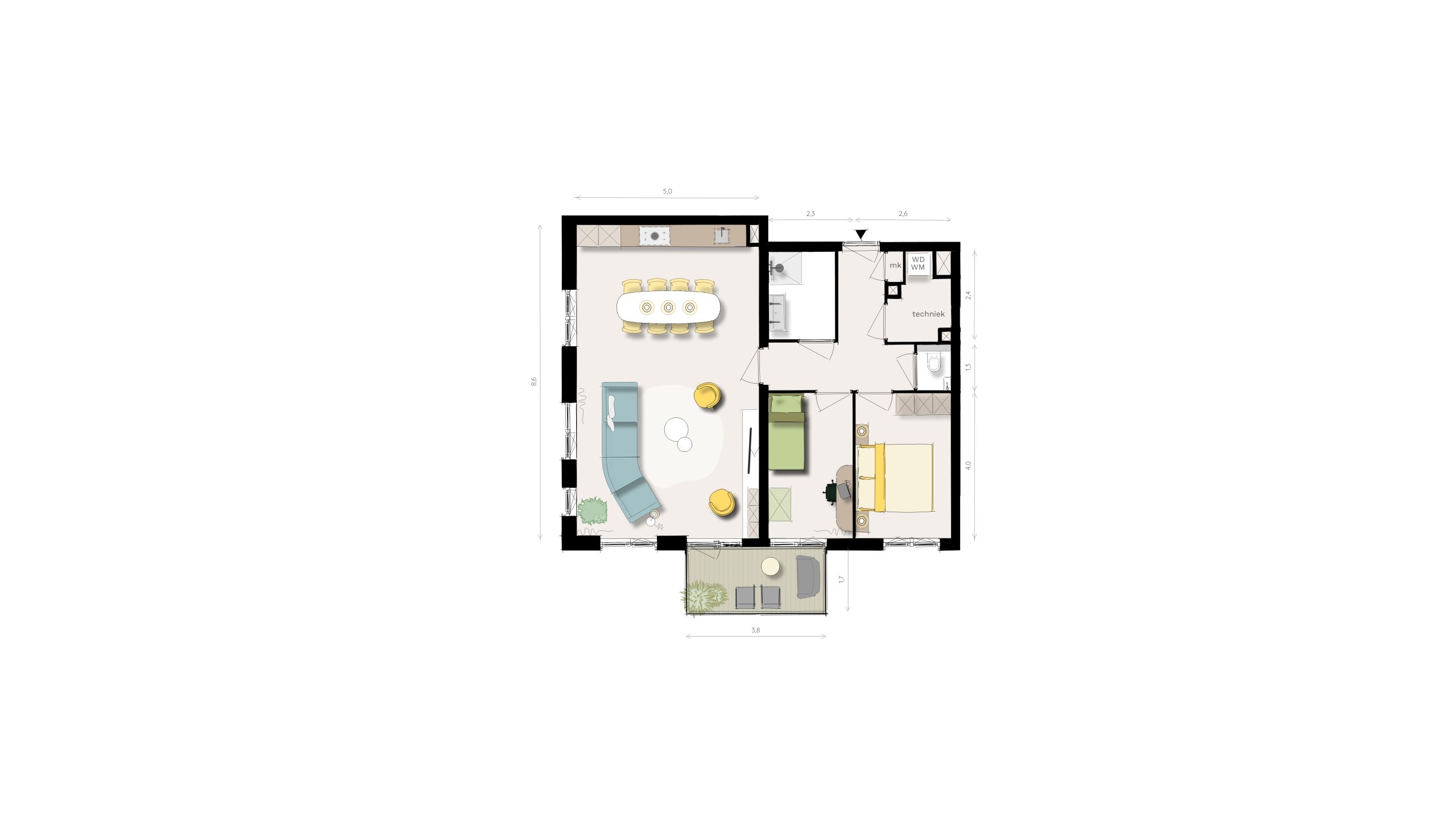 - Privé tuin (24 tot 69m2) of balkon of terras (6 tot 10m2)