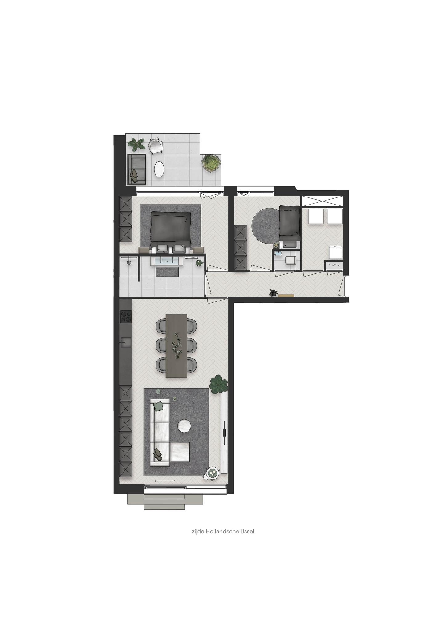 Met een spectaculair uitzicht op de rivier en de unieke positie op de hoek van de IJssel en de haven, is het Kraanhuis het meest eigenzinnige gebouw van De Oude Werf. De abstracte kapvorm en de afgeschuinde hoek bij de entree, vallen direct op wanneer u aankomt. Kenmerkende vormen die ook terug te zien zijn in de nabijgelegen monumentale Smederijloods en het Zellinghuis. De unieke hoekpositie biedt de bewoners van het Kraanhuis een vrij gevoel, dat nog eens versterkt wordt bij de woningen onder het schuine dak. Hier treft u woonkamers met plaatselijk een dubbele hoogte die een zee van ruimte bieden.