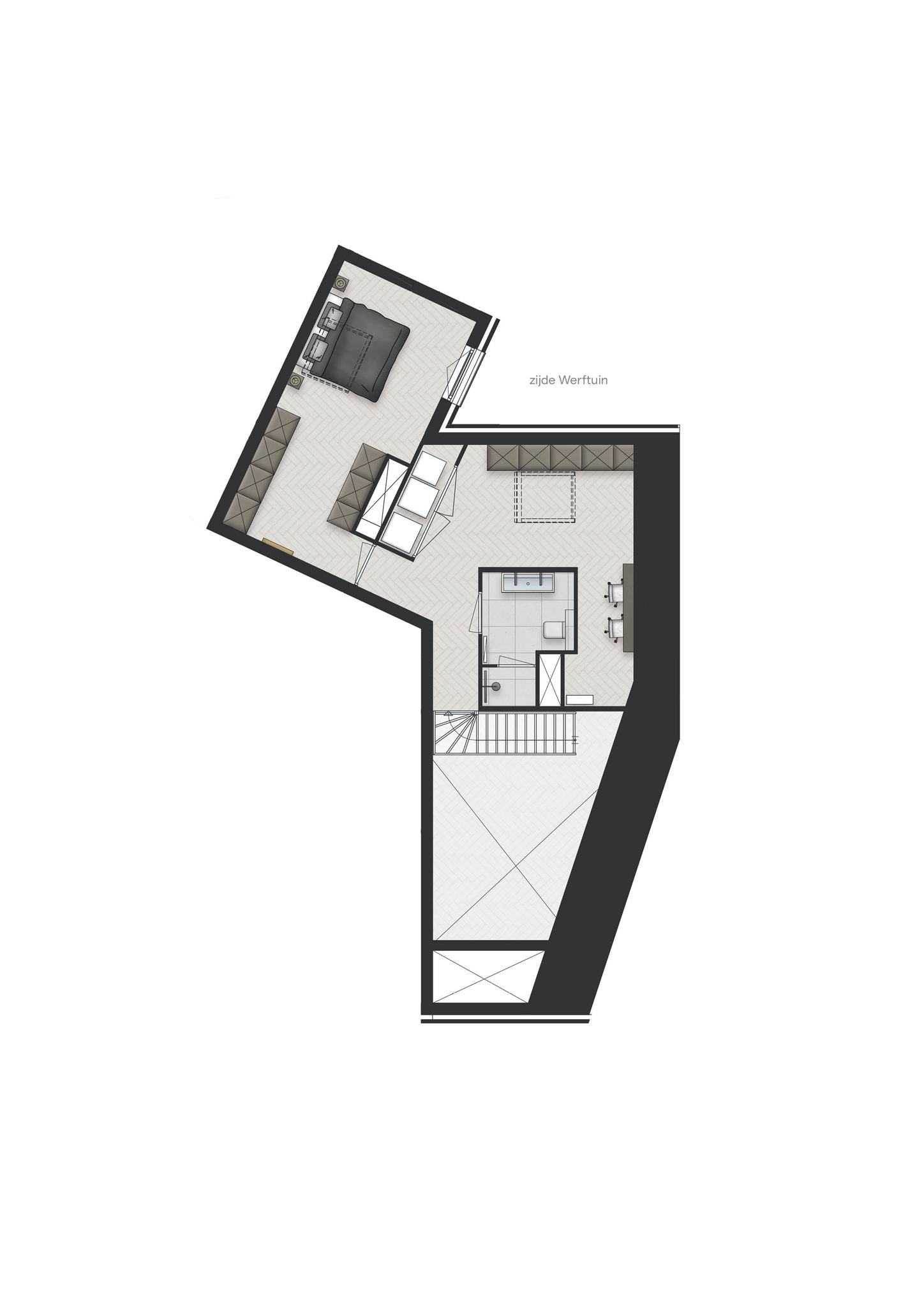 Met een spectaculair uitzicht op de rivier en de unieke positie op de hoek van de IJssel en de haven, is het Kraanhuis het meest eigenzinnige gebouw van De Oude Werf. De abstracte kapvorm en de afgeschuinde hoek bij de entree, vallen direct op wanneer u aankomt. Kenmerkende vormen die ook terug te zien zijn in de nabijgelegen monumentale Smederijloods en het Zellinghuis. De unieke hoekpositie biedt de bewoners van het Kraanhuis een vrij gevoel, dat nog eens versterkt wordt bij de woningen onder het schuine dak. Hier treft u woonkamers met plaatselijk een dubbele hoogte die een zee van ruimte bieden.