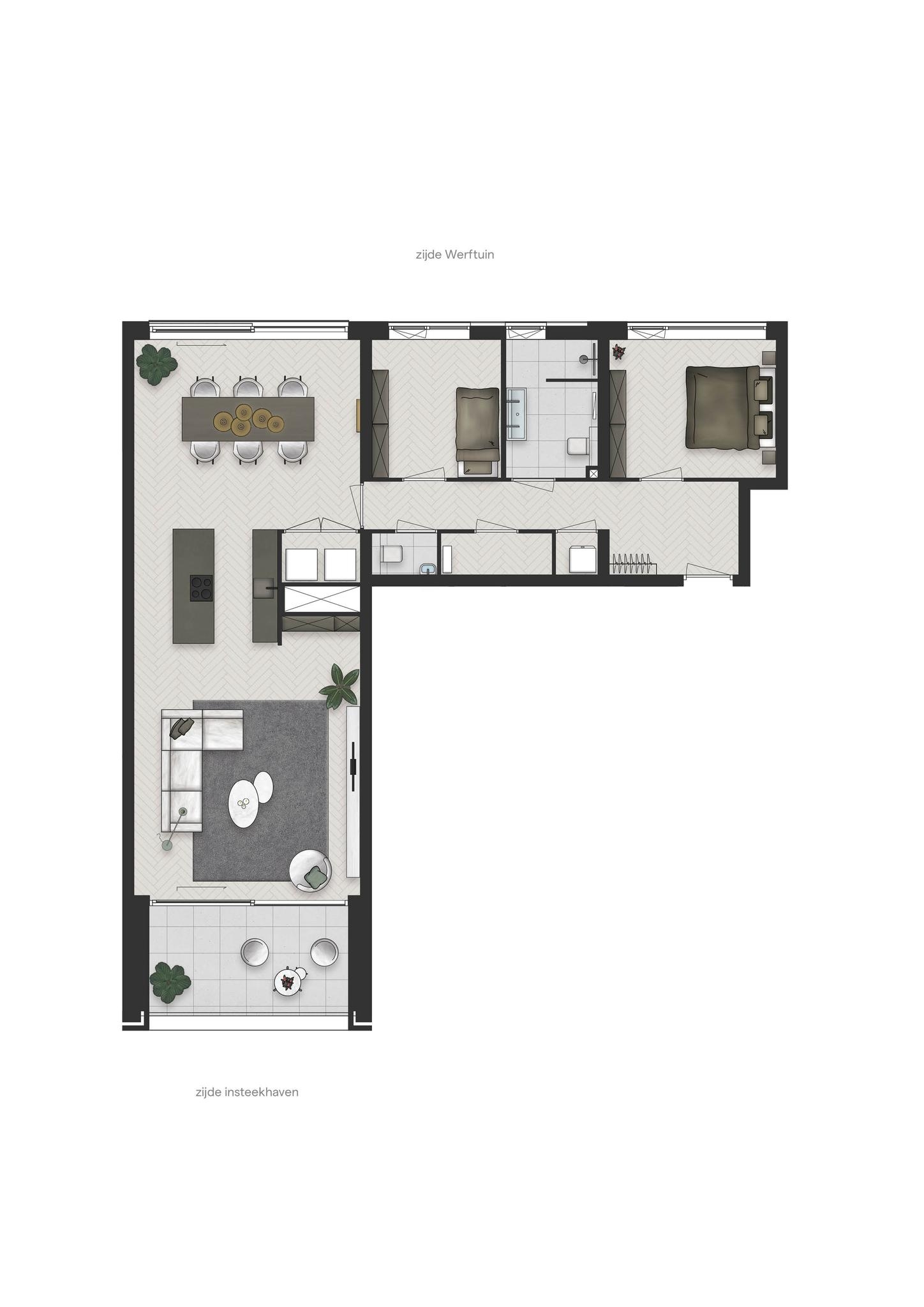 De stadswoningen hebben een eigen voordeur aan de straatkant, waardoor u direct aan de kade woont en op de verdieping kunt slapen. De achtergelegen Werftuin en de ruime balkons bieden bewoners de gelegenheid om zich even terug te trekken en te genieten van deze inspirerende nieuwe woonomgeving. Wonen in het Scheepshuis brengt u een unieke manier van leven langs een van de oudste dwarshellingen van Nederland.
